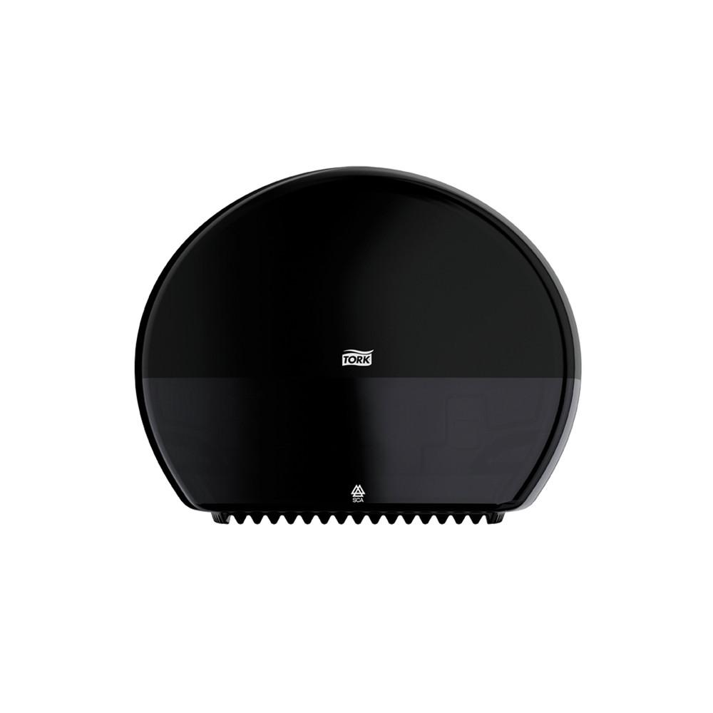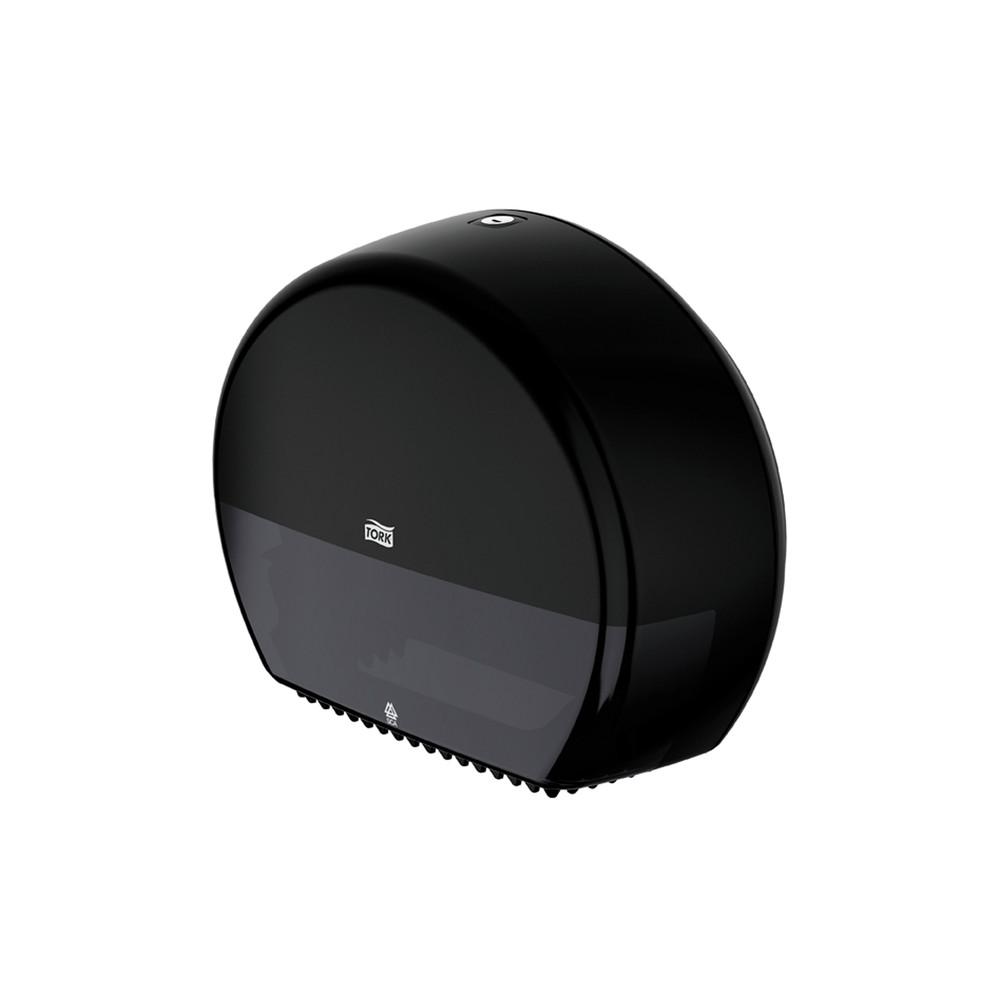 Zwarte toiletroldispenser voor mini-jumbo rol (T-box), H28xL34xB.13 cm.
