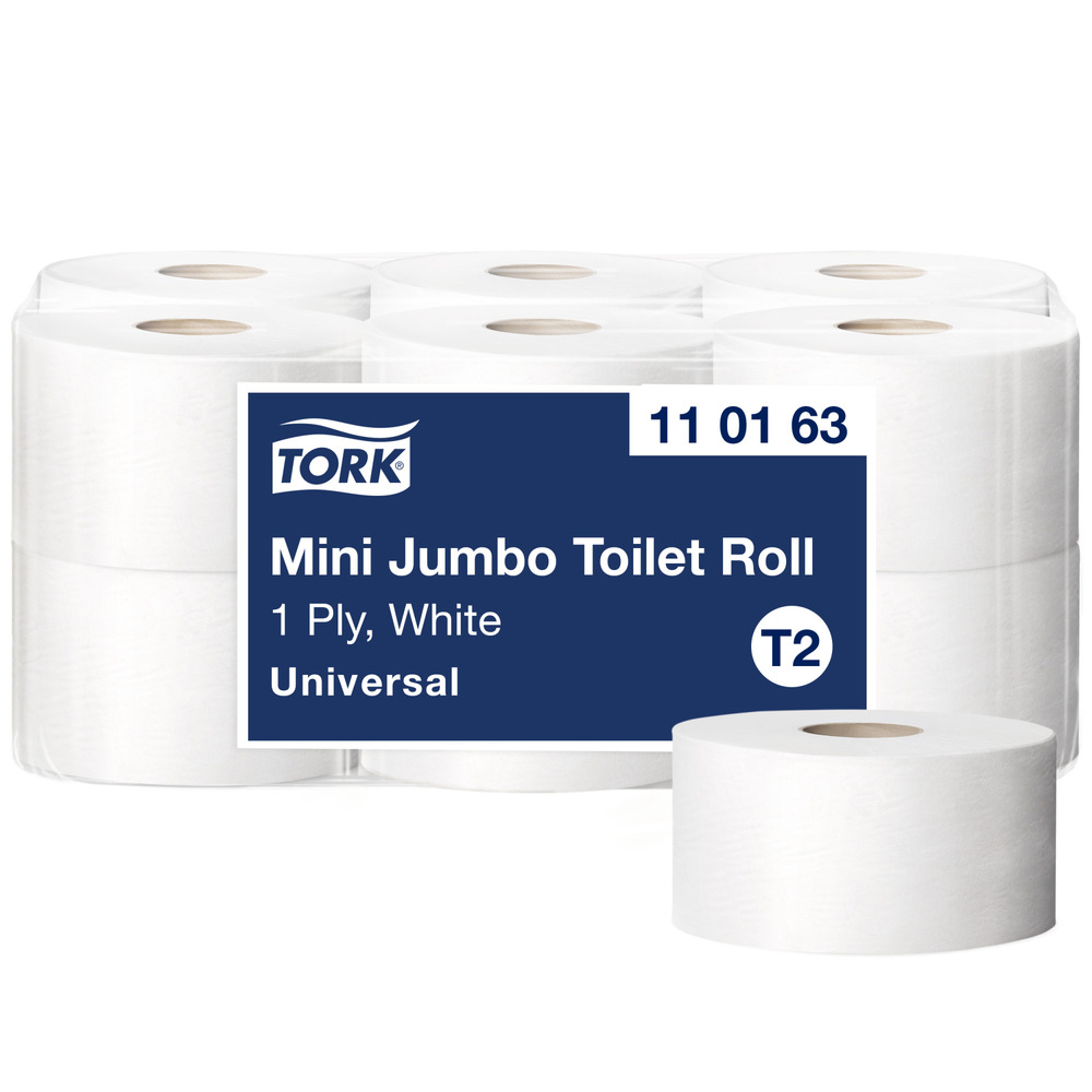 Toiletpapier 1laags jumbo minirol, 240 meter lang, 10 cm breed, 1714 vel, geschikt voor de Tork dispensers (T-box mini).