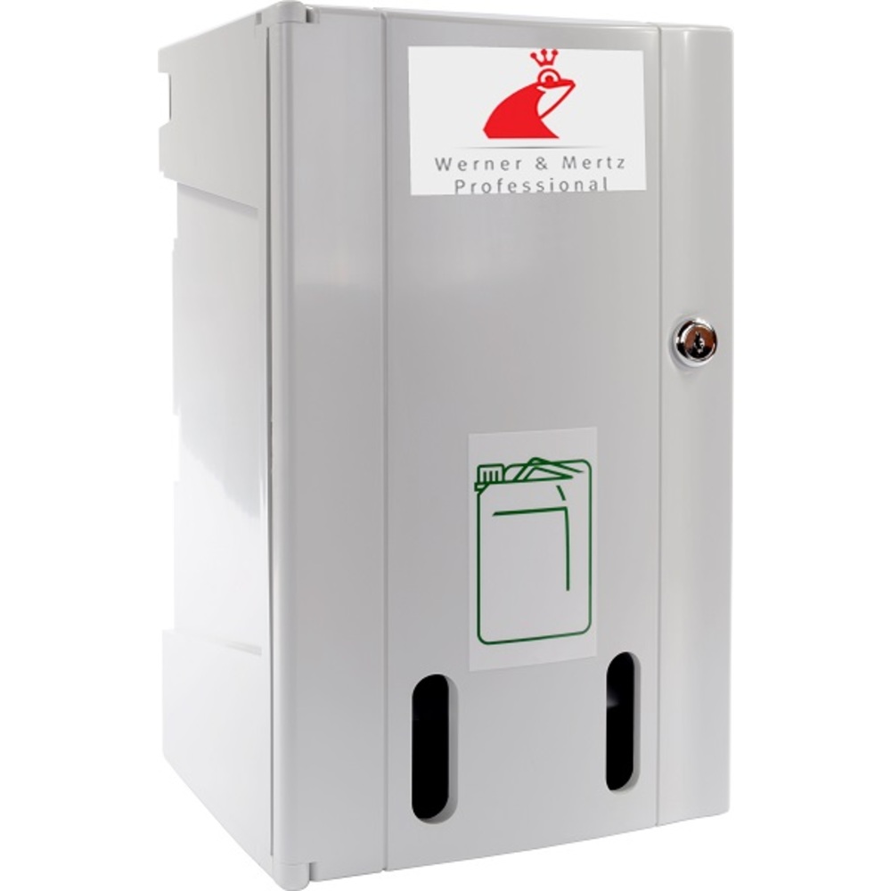 Ophangsysteem met sleutel voor opslag van geconcentreerde detergenten. Opslag mogelijk voor cans tot 5L. Afgesloten, beveiligt ze de toegang tot de producten door de gebruikers en bezoekers. Vergemakkelijkt de doorgang, de reiniging en voorkomt ook handmatige overdosering. Wordt vooral gebruikt met de verdunningsystemen van Tana Dos