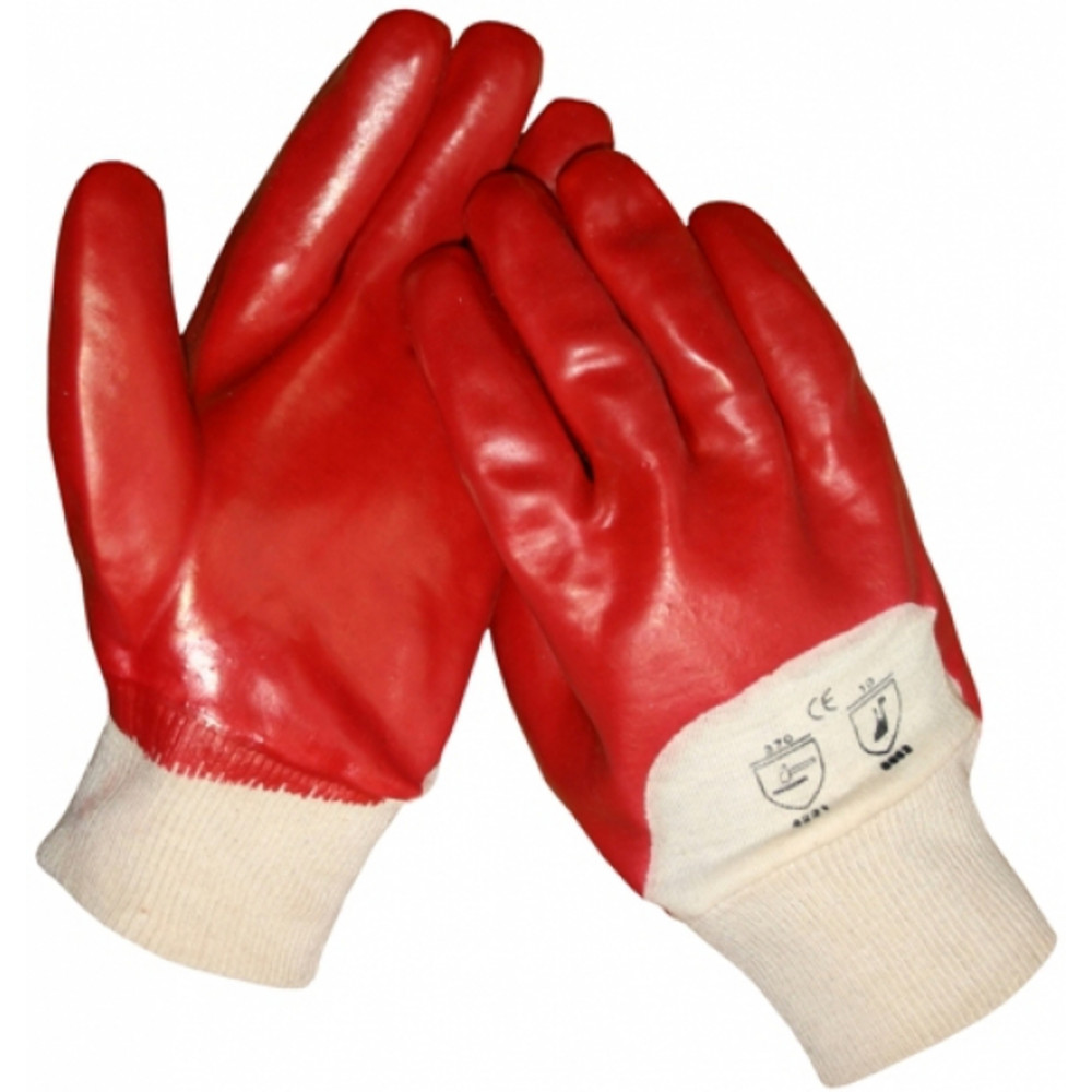 Werkhandschoen PVC rood met ventilerende rug en tricot boord.