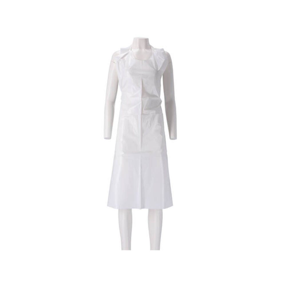 De schorten zijn gemaakt van PE. Het voornaamste doel van de PE schorten is het beschermen van de eigen kleding tegen vies of nat worden, het is minder tijdrovend en hygiënischer om een schoon disposable schort aan te trekken dan de werknemer zich volledig om te laten kleden tijdens het werk. De gevouwen PE schorten hebben de volgende eigenschappen: - Wit - 125 x 80 cm - 20my - Geruwd - Voldoen aan CE-norm - Voldoen aan verordening(EU) nr. 10/2011 van het Europees parlement en raad inzake plastic materialen en voorwerpen bestemd om met levensmiddelen in contact te komen. - Product voor eenmalig gebruik
