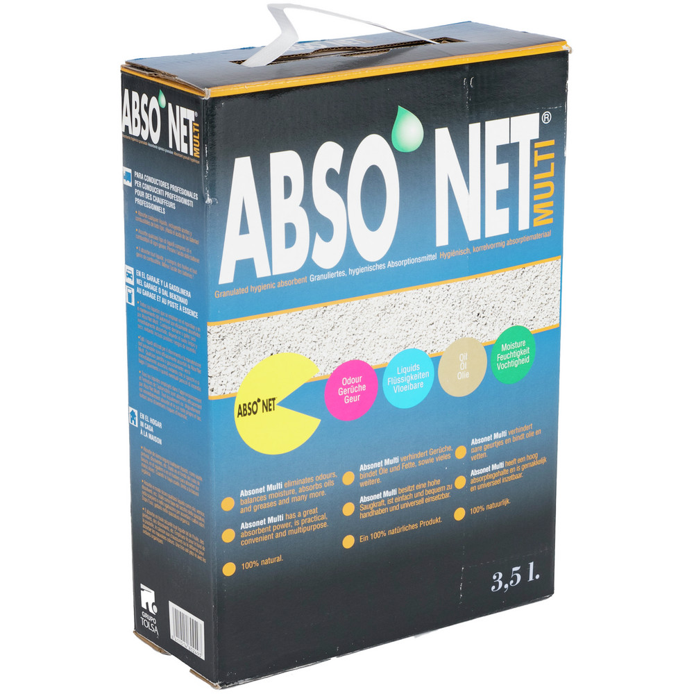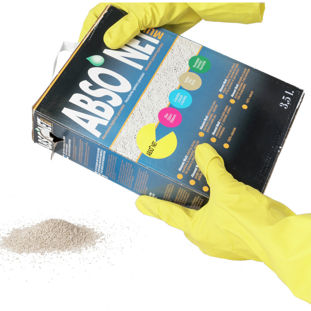 Absorbtiekorrels Absonet 3,5lt in een strooi-doos.