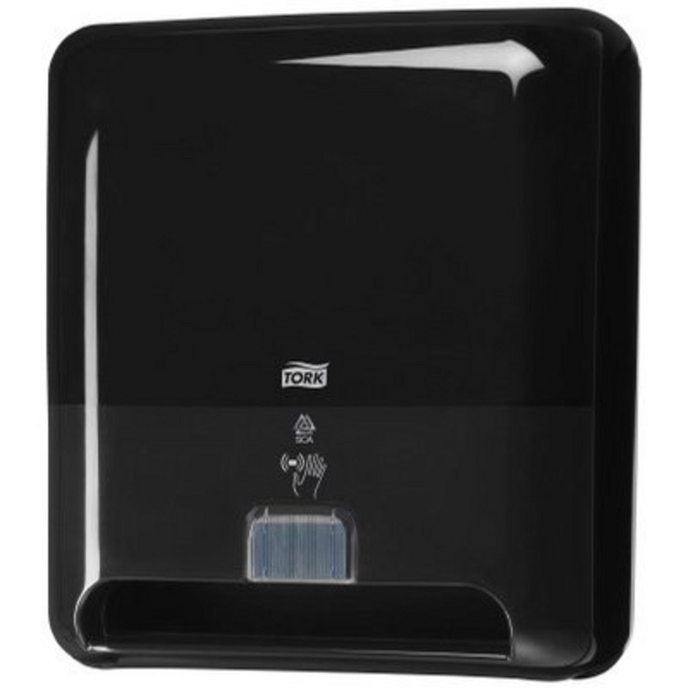 TOUCH FREE Handdoekrolautomaat Tork Elevation H1 kunststof Zwart, met sensor. Gecontroleerd gebruik: afgifte per vel. Afmeting: H368 x B331 x D206 mm.