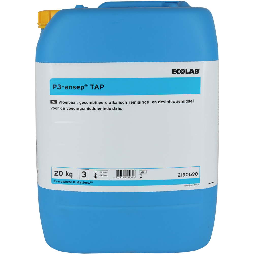 Keukenreiniger P 3 Ansep TAP 20 Kg. Vloeibaar, gecombineerd alkalisch reinigings- en desinfectiemiddel voor de voedingsmiddelenindustrie.