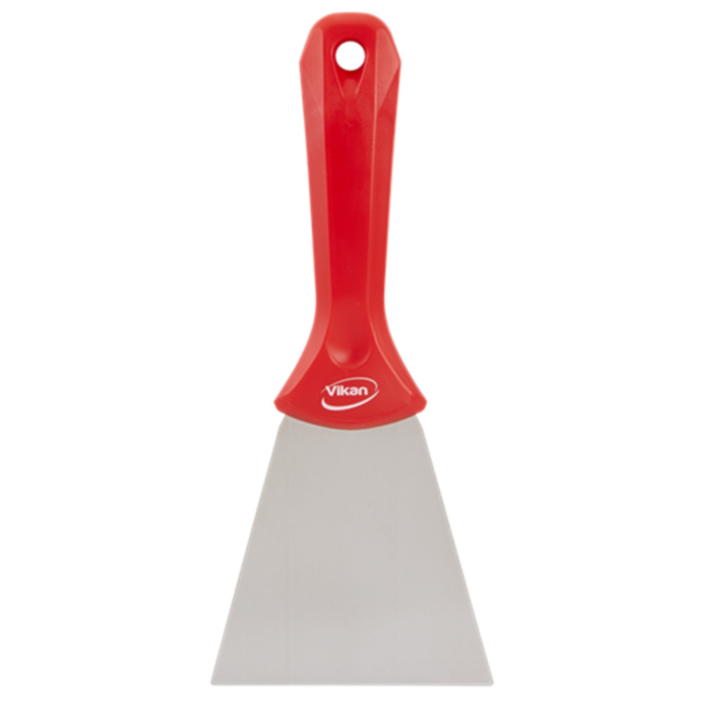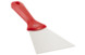 Plaatmes, speciaal voor ovens, bakplaten en aangekoekt vuil. Polypropyleen met roestvrijstaal blad 90 x 240 x 80 mm. Reiniging tot 100 C. Kleur wit.