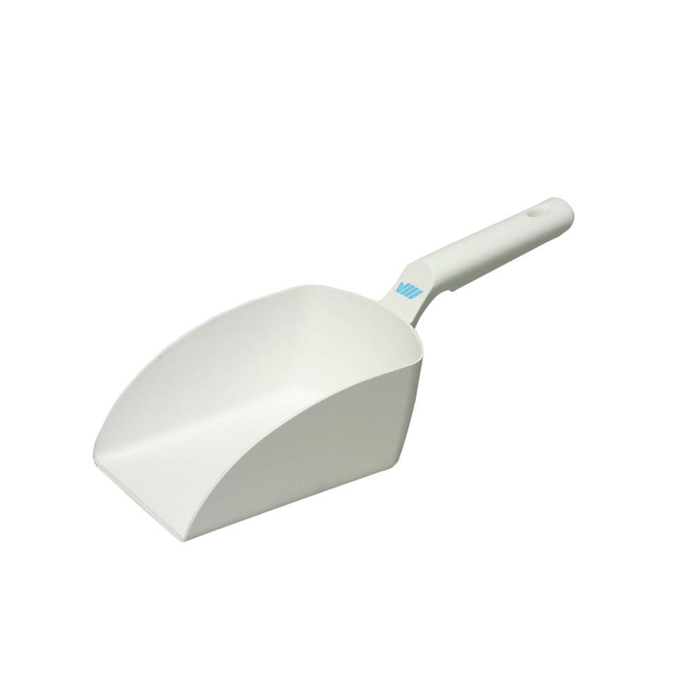 Stevige handschep voor alle soorten droge en vochtige ingredienten. Met ophangoog. Kleur wit. Afmeting: 330 x 120 mm.