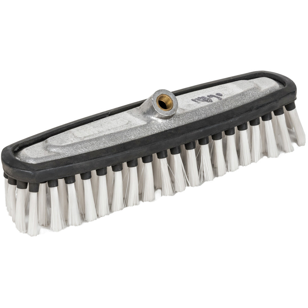 Wasborstel met harde polyesther haren. Metalen kap met waterdoorvoer.