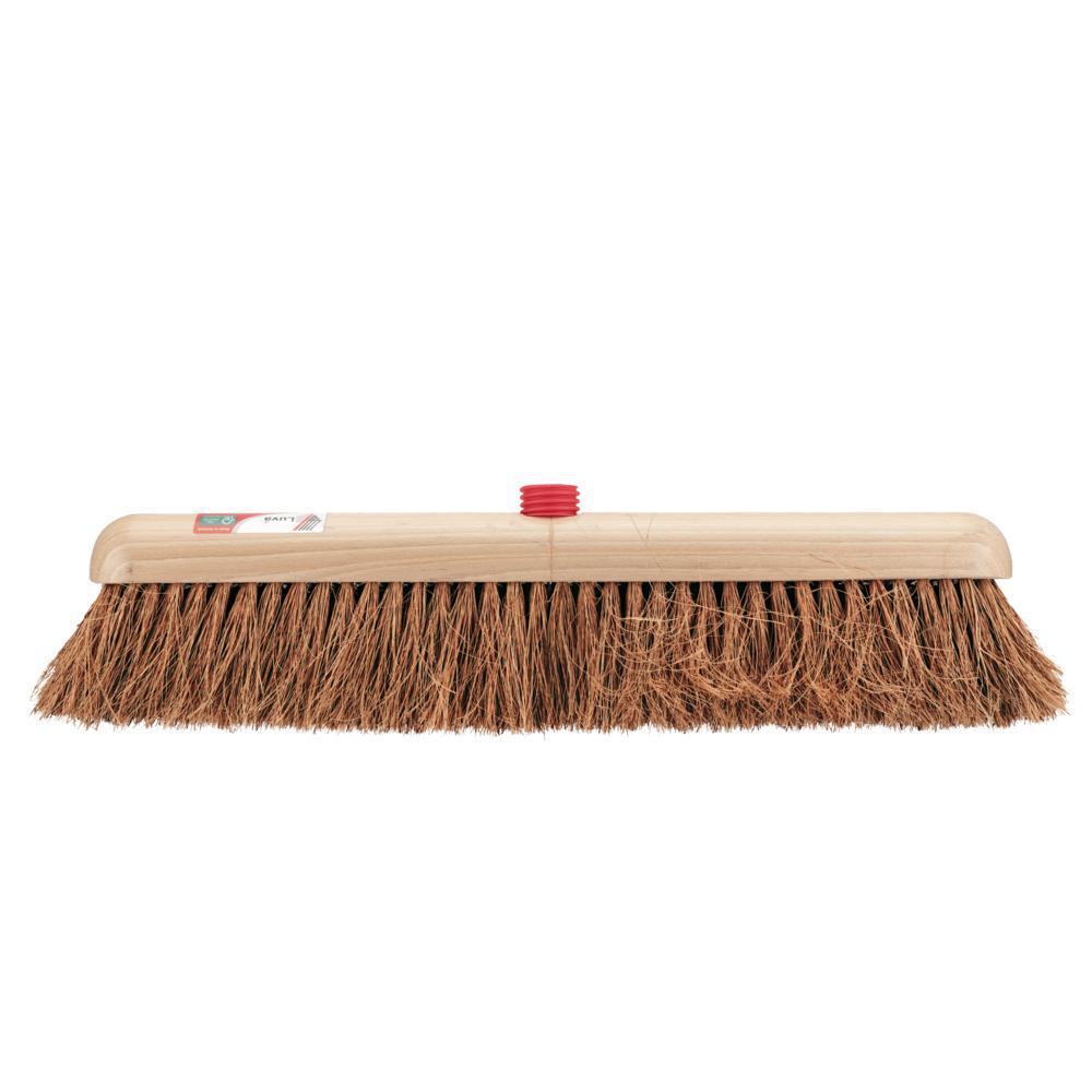 Houten zaalveger, rond gelakt met cocos vulling en met
