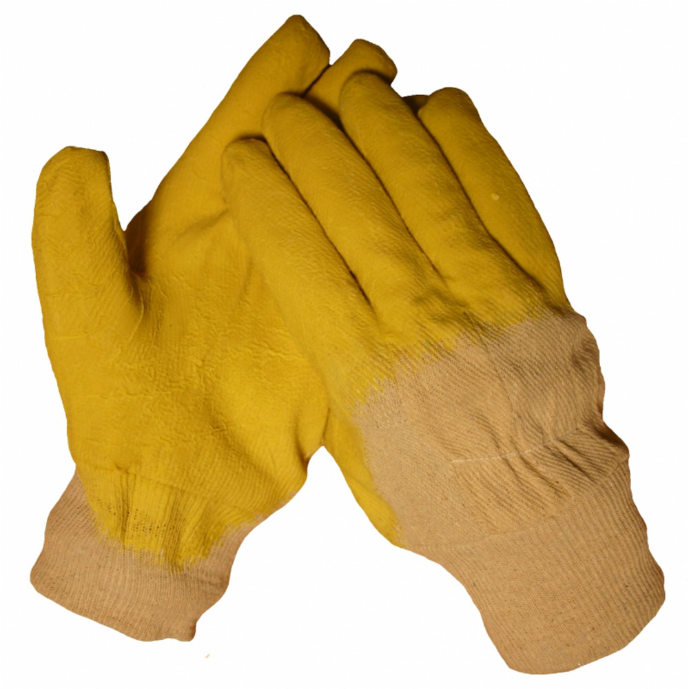 Werkhandschoen latex geel met ventilerende rug en tricot boord.