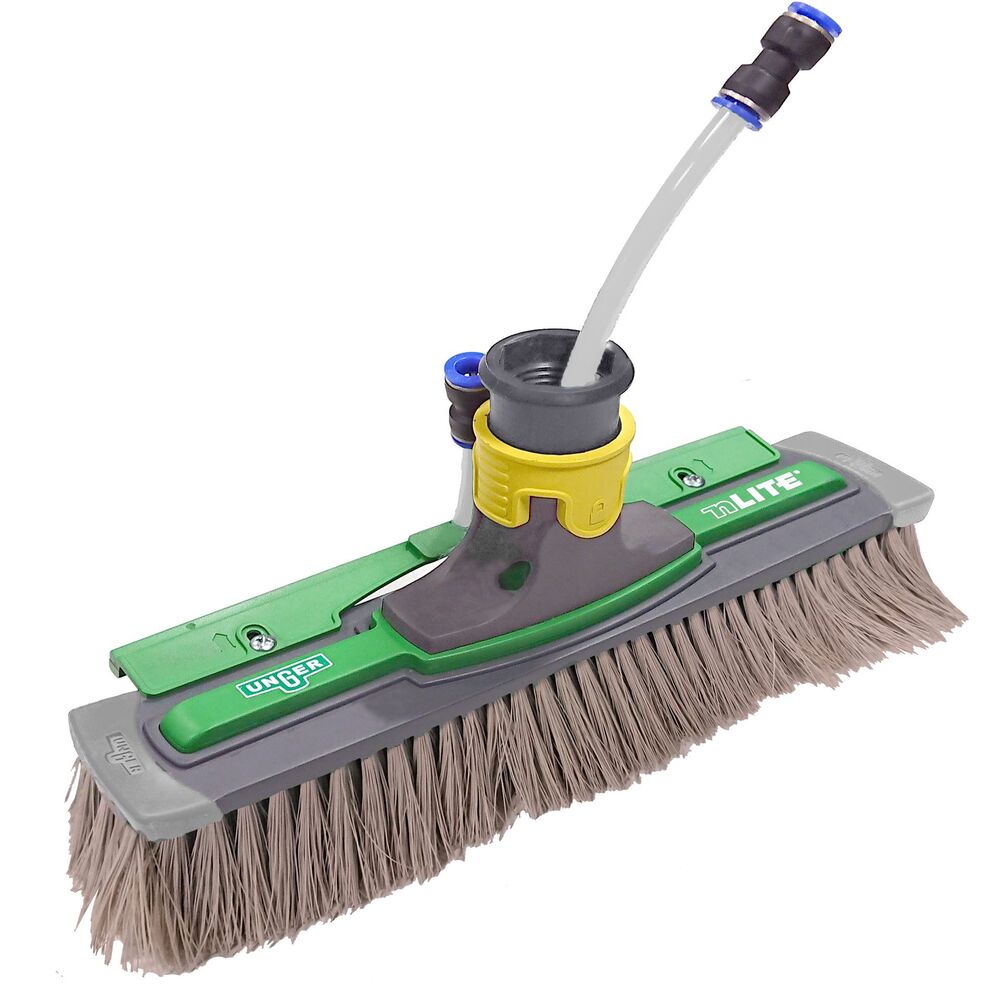 Superlichte watergeleidende borstel met sproeieraansluitingen.