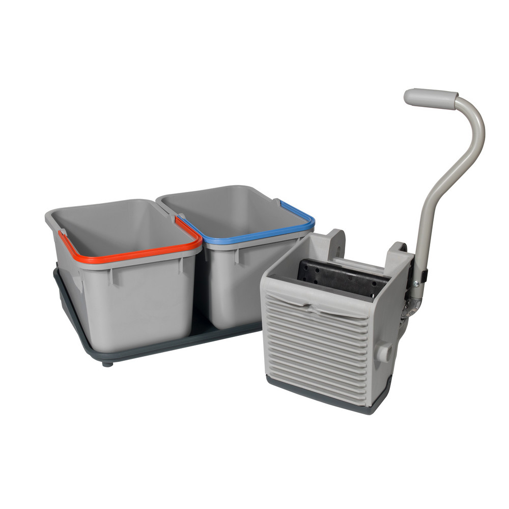 Kit SGA-2 Allmop verticale pers, kleur grijs, 2x22 liter emmers met blauwe en rode hendel, inclusief tray