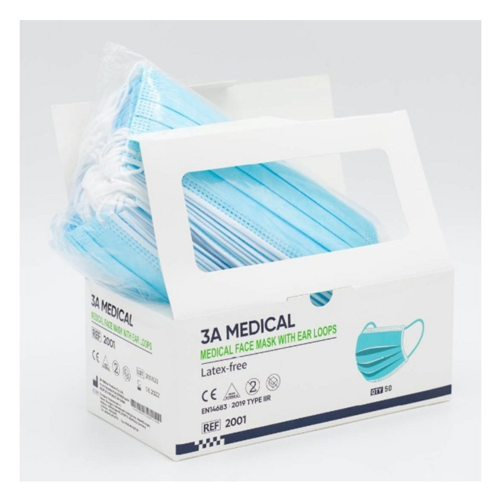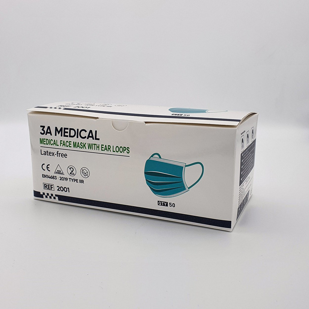 Mondmasker 3 laags type-IIR filter, Professionele kwaliteit voorzien van CE markering en EN certificaten voor medisch gebruik.