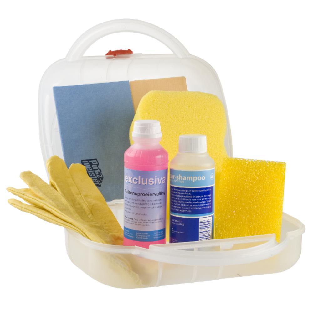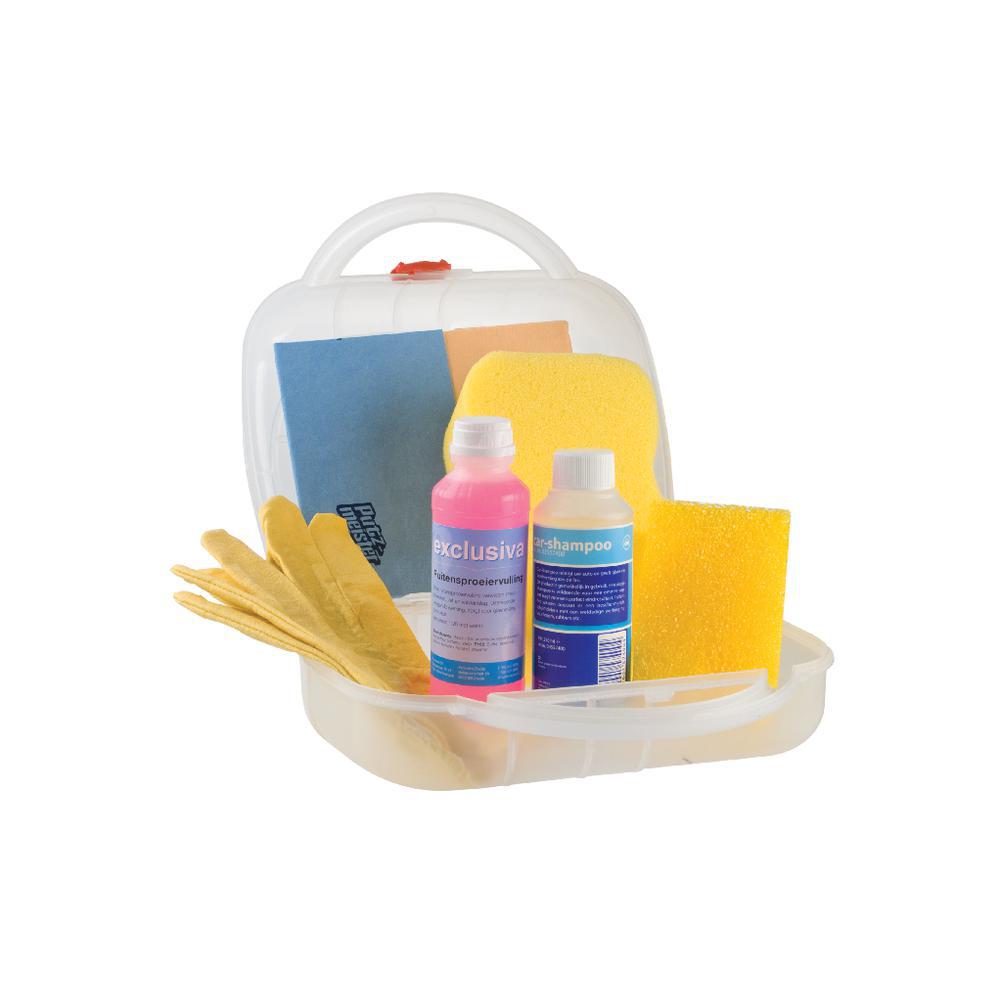 NU BIJ AFNAME VAN 18 STUKS, SLECHTS ¤4,50 /ST! Inhoud : Insectenspons Autospons Jumbo 22x13x6 Shampoo 250ml zomerpakket Ruitensproeiervulling zomer concentraat Handschoen latex geel Combi Zeem Pakket verpakt in een t ransparant auto koffertje, voorzien van een koffer label (voor reclame uitingen)